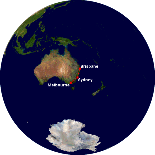 As promised, we made a pair of right turns to send us in SYD's direction.